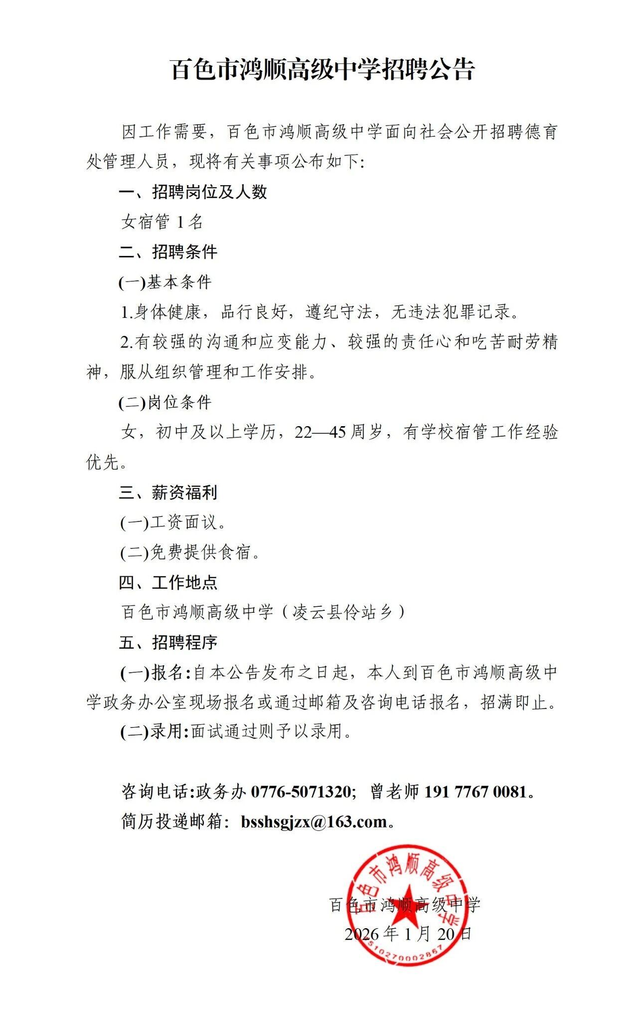 原文标题:百色市鸿顺高级中学招聘公告